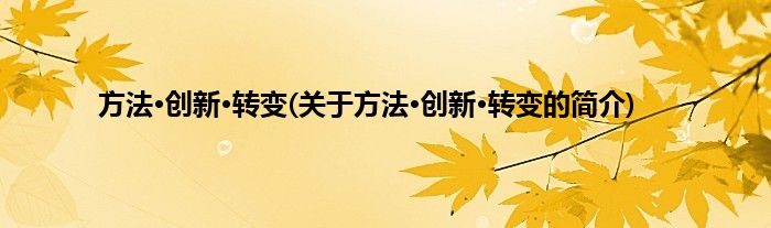 本文关于方法·创新·转变的简介就讲解完毕,希望对大家有所帮助。