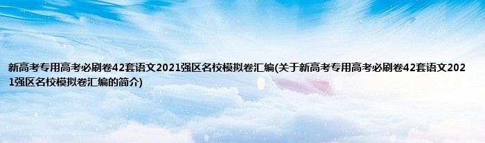 1、 《新高考专用高考必刷卷42套语文2021强区名校模拟卷汇编》是2020年开明出版社出版的图书。