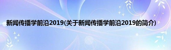 本文关于新闻传播学前沿2019的简介就讲解完毕,希望对大家有所帮助。