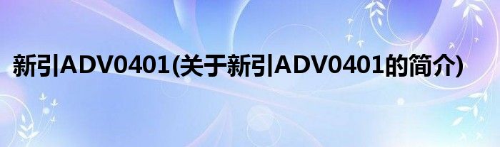 本文关于新引ADV0401的简介就讲解完毕,希望对大家有所帮助。