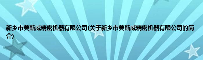 本文关于新乡市美斯威精密机器有限公司的简介就讲解完毕,希望对大家有所帮助。