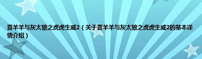 本文关于喜羊羊与灰太狼之虎虎生威2的基本详情介绍就讲解完毕,希望对大家有所帮助。