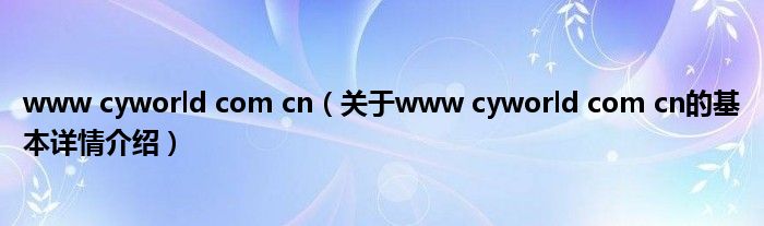 本文关于www cyworld com cn的基本详情介绍就讲解完毕,希望对大家有所帮助。