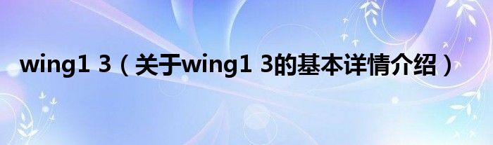 本文关于wing1 3的基本详情介绍就讲解完毕,希望对大家有所帮助。