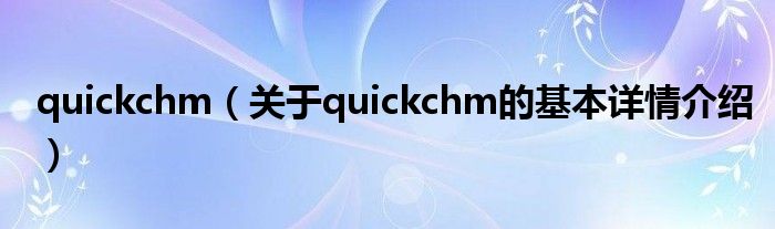 本文关于quickchm的基本详情介绍就讲解完毕,希望对大家有所帮助。