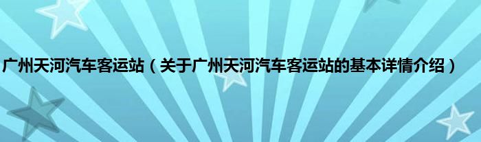 本文关于广州天河汽车客运站的基本详情介绍就讲解完毕,希望对大家有所帮助。