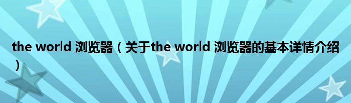 本文关于the world 浏览器的基本详情介绍就讲解完毕,希望对大家有所帮助。