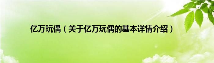 本文关于亿万玩偶的基本详情介绍就讲解完毕,希望对大家有所帮助。