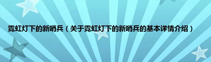 本文关于霓虹灯下的新哨兵的基本详情介绍就讲解完毕,希望对大家有所帮助。