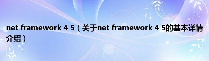 本文关于net framework 4 5的基本详情介绍就讲解完毕,希望对大家有所帮助。