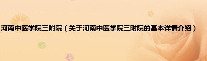 本文关于河南中医学院三附院的基本详情介绍就讲解完毕,希望对大家有所帮助。