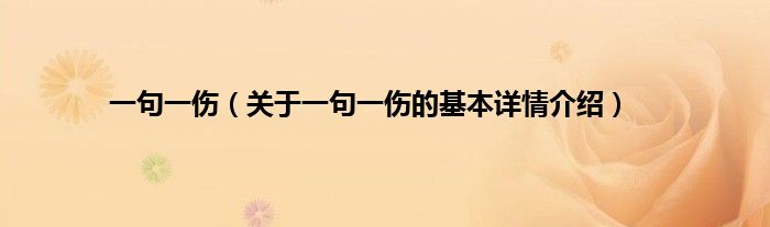 本文关于一句一伤的基本详情介绍就讲解完毕,希望对大家有所帮助。