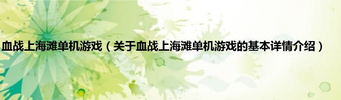 本文关于血战上海滩单机游戏的基本详情介绍就讲解完毕,希望对大家有所帮助。