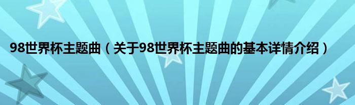 本文关于98世界杯主题曲的基本详情介绍就讲解完毕,希望对大家有所帮助。