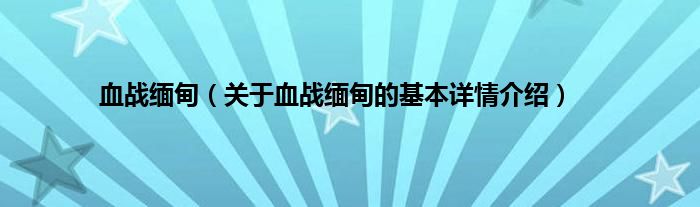 本文关于血战缅甸的基本详情介绍就讲解完毕,希望对大家有所帮助。