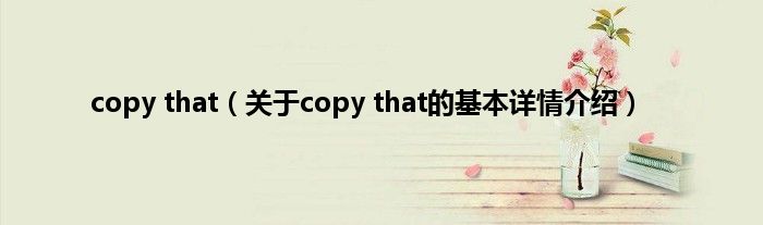 本文关于copy that的基本详情介绍就讲解完毕,希望对大家有所帮助。