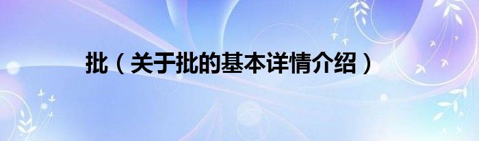 大家好我是小蝌蚪,批,关于批的基本详情介绍很多人还不知道,那么现在让我们一起来看看吧!