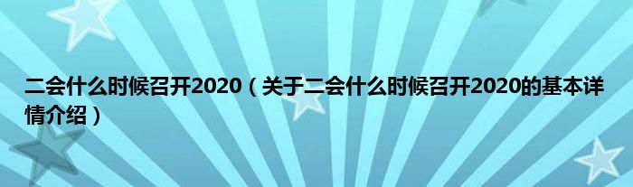 本文关于二会什么时候召开2020的基本详情介绍就讲解完毕,希望对大家有所帮助。