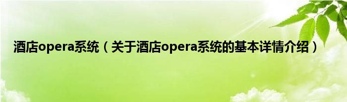 本文关于酒店opera系统的基本详情介绍就讲解完毕,希望对大家有所帮助。