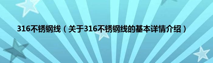 本文关于316不锈钢线的基本详情介绍就讲解完毕,希望对大家有所帮助。