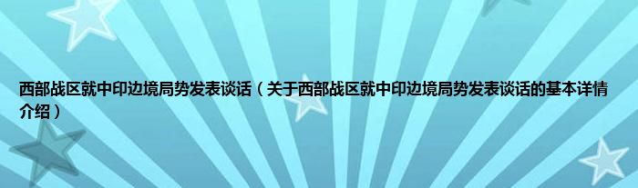 本文关于西部战区就中印边境局势发表谈话的基本详情介绍就讲解完毕,希望对大家有所帮助。