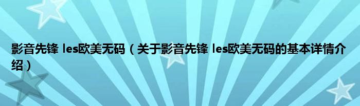 本文关于影音先锋 les欧美无码的基本详情介绍就讲解完毕,希望对大家有所帮助。