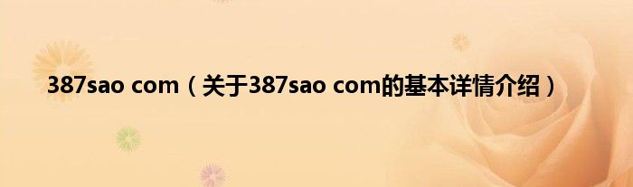 本文关于387sao com的基本详情介绍就讲解完毕,希望对大家有所帮助。