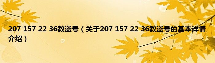 本文关于207 157 22 36教盗号的基本详情介绍就讲解完毕,希望对大家有所帮助。