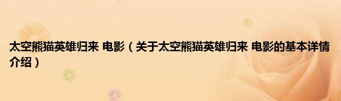 本文关于太空熊猫英雄归来 电影的基本详情介绍就讲解完毕,希望对大家有所帮助。
