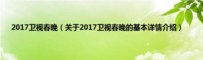 本文关于2017卫视春晚的基本详情介绍就讲解完毕,希望对大家有所帮助。