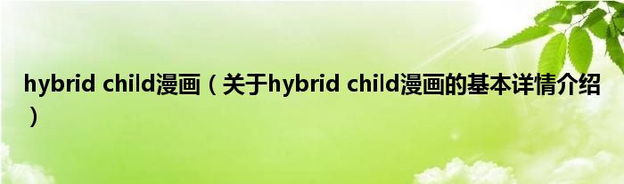 本文关于hybrid child漫画的基本详情介绍就讲解完毕,希望对大家有所帮助。
