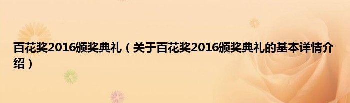 本文关于百花奖2016颁奖典礼的基本详情介绍就讲解完毕,希望对大家有所帮助。