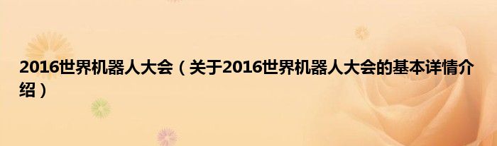 2016世界机器人大会(关于2016世界机器人大会的基本详情介绍)