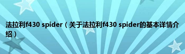 本文关于法拉利f430 spider的基本详情介绍就讲解完毕,希望对大家有所帮助。
