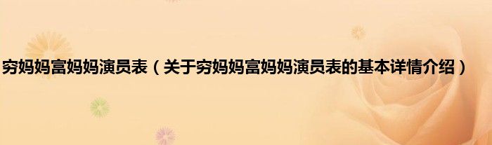 本文关于穷妈妈富妈妈演员表的基本详情介绍就讲解完毕,希望对大家有所帮助。