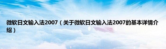 本文关于微软日文输入法2007的基本详情介绍就讲解完毕,希望对大家有所帮助。