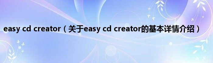本文关于easy cd creator的基本详情介绍就讲解完毕,希望对大家有所帮助。