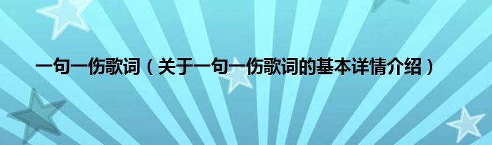 本文关于一句一伤歌词的基本详情介绍就讲解完毕,希望对大家有所帮助。