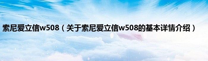本文关于索尼爱立信w508的基本详情介绍就讲解完毕,希望对大家有所帮助。