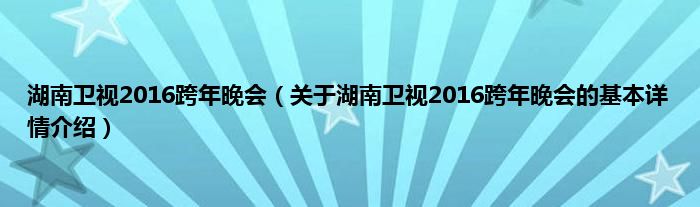 本文关于湖南卫视2016跨年晚会的基本详情介绍就讲解完毕,希望对大家有所帮助。