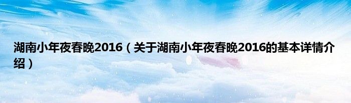本文关于湖南小年夜春晚2016的基本详情介绍就讲解完毕,希望对大家有所帮助。
