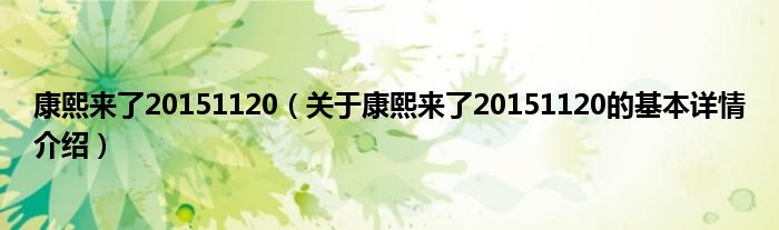 本文关于康熙来了20151120的基本详情介绍就讲解完毕,希望对大家有所帮助。