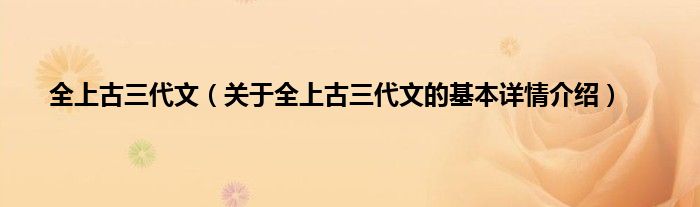 本文关于全上古三代文的基本详情介绍就讲解完毕,希望对大家有所帮助。