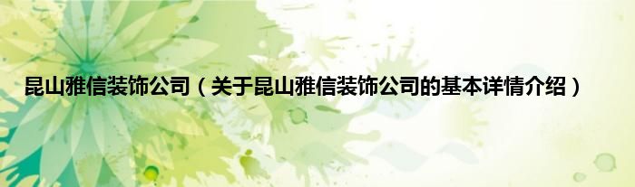 本文关于昆山雅信装饰公司的基本详情介绍就讲解完毕,希望对大家有所帮助。