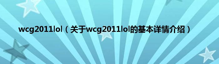 本文关于wcg2011lol的基本详情介绍就讲解完毕,希望对大家有所帮助。