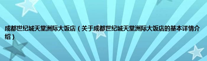 本文关于成都世纪城天堂洲际大饭店的基本详情介绍就讲解完毕,希望对大家有所帮助。