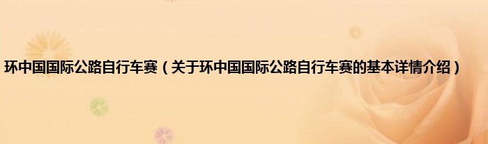 本文关于环中国国际公路自行车赛的基本详情介绍就讲解完毕,希望对大家有所帮助。