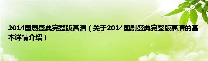本文关于2014国剧盛典完整版高清的基本详情介绍就讲解完毕,希望对大家有所帮助。