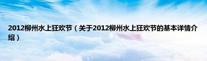 2012柳州水上狂欢节(关于2012柳州水上狂欢节的基本详情介绍)