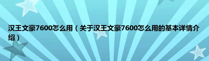 本文关于汉王文豪7600怎么用的基本详情介绍就讲解完毕,希望对大家有所帮助。
